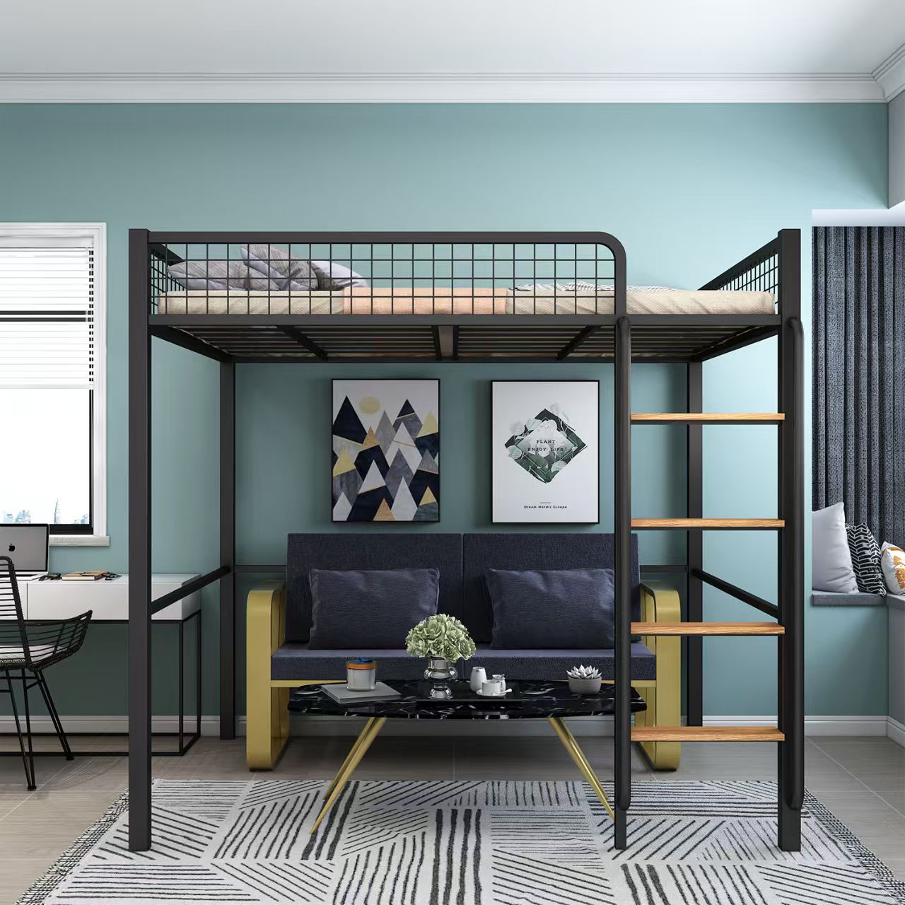 Strong and stylish iron loft beds designed for compact apartments and student dormitories.