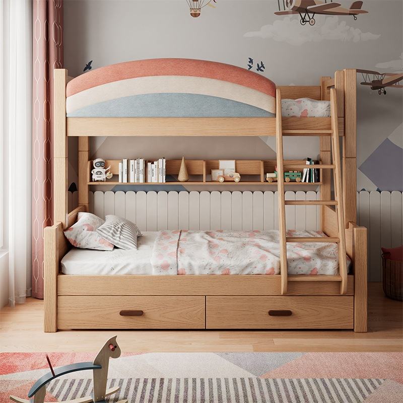 The modern design multifunctional solid wood children’s bunk beds are designed to maximize both style and practicality. Built with high-quality solid wood, these beds deliver safety, eco-friendliness, and durability, making them a dependable choice for schools, institutions, and family homes.